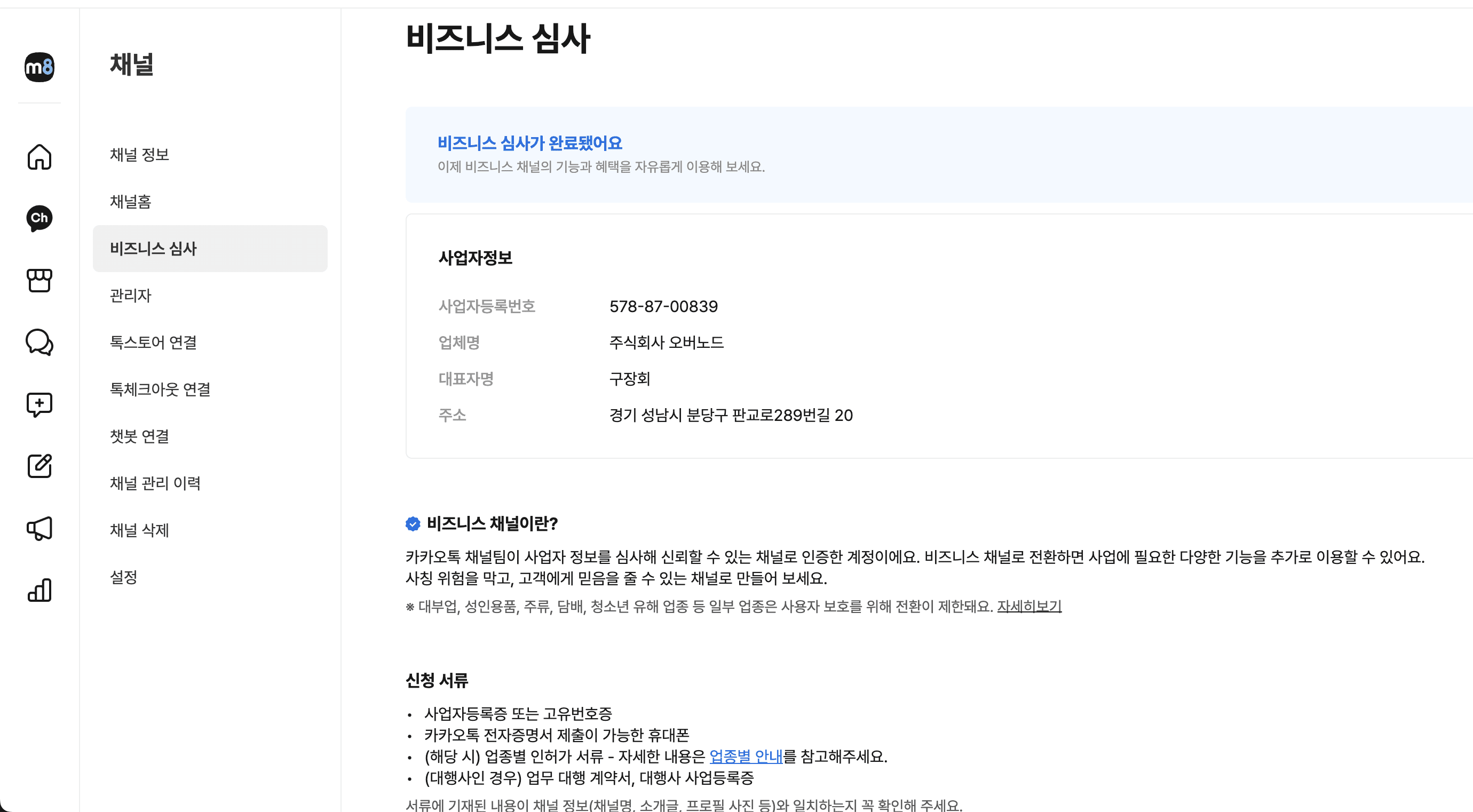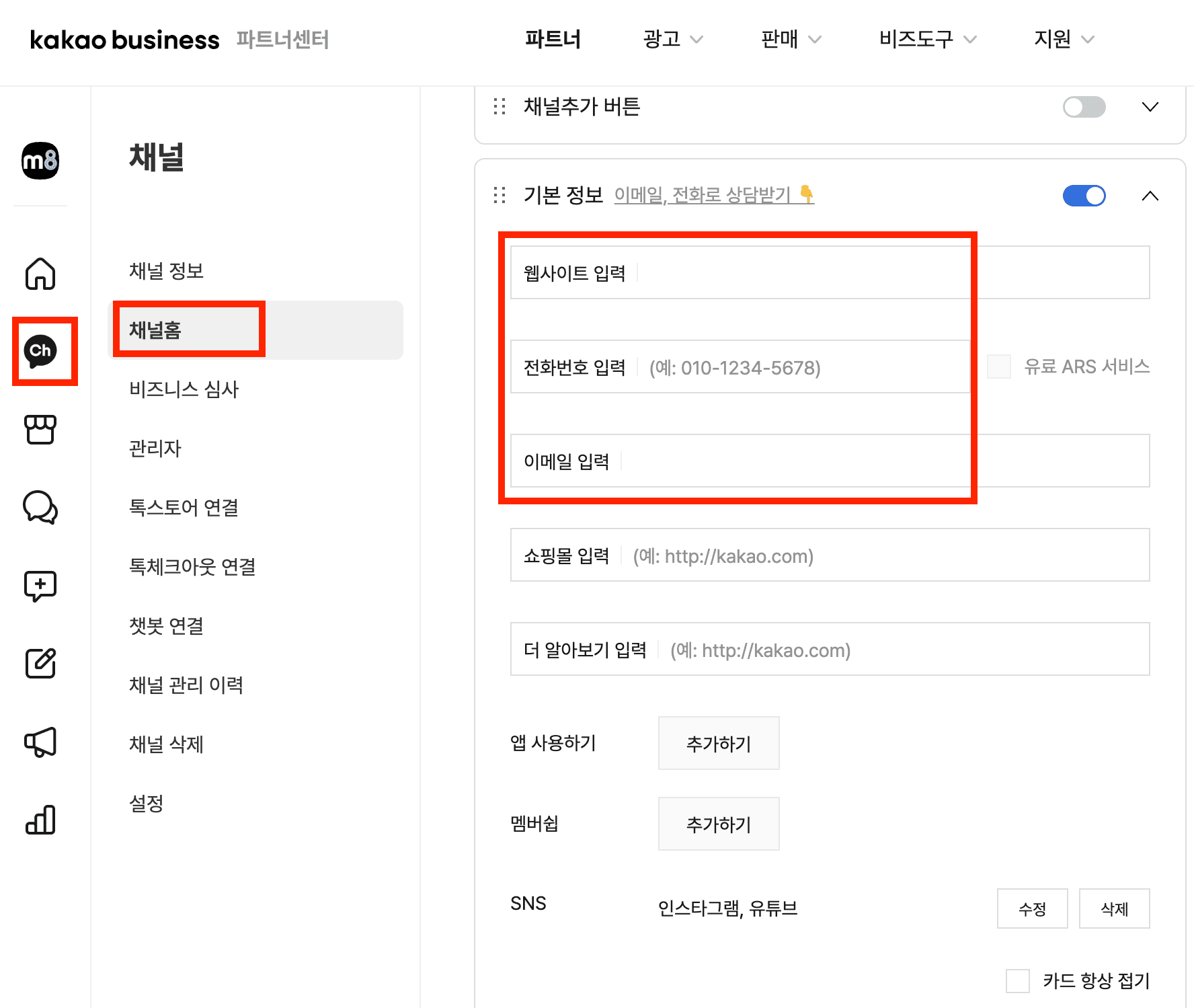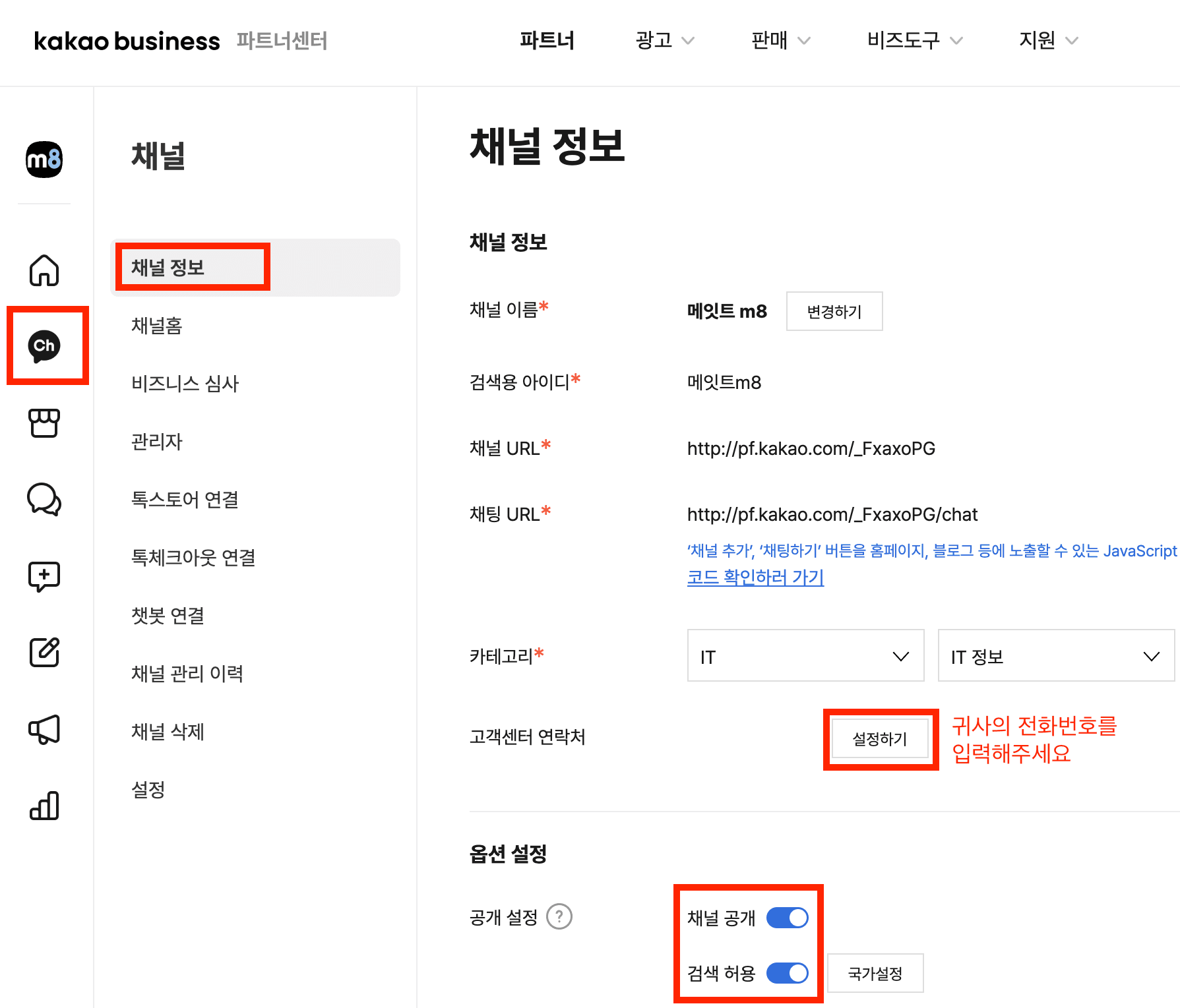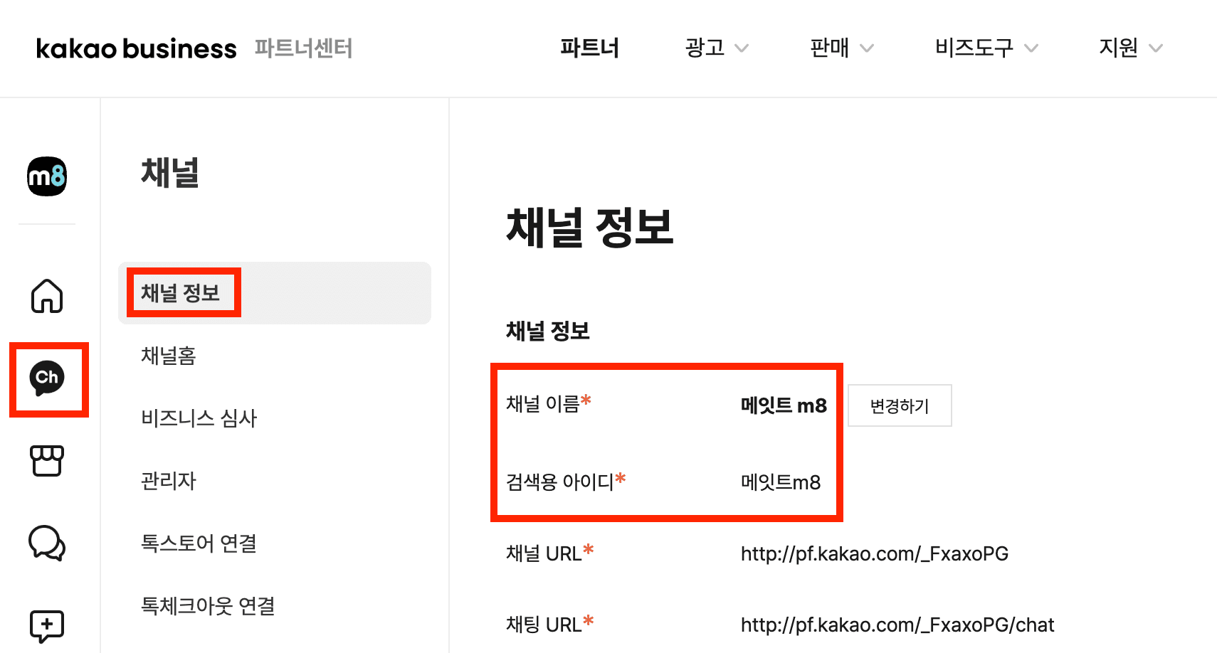 *위 화면은 예시 입니다. 귀사의 채널을 선택 해주세요.